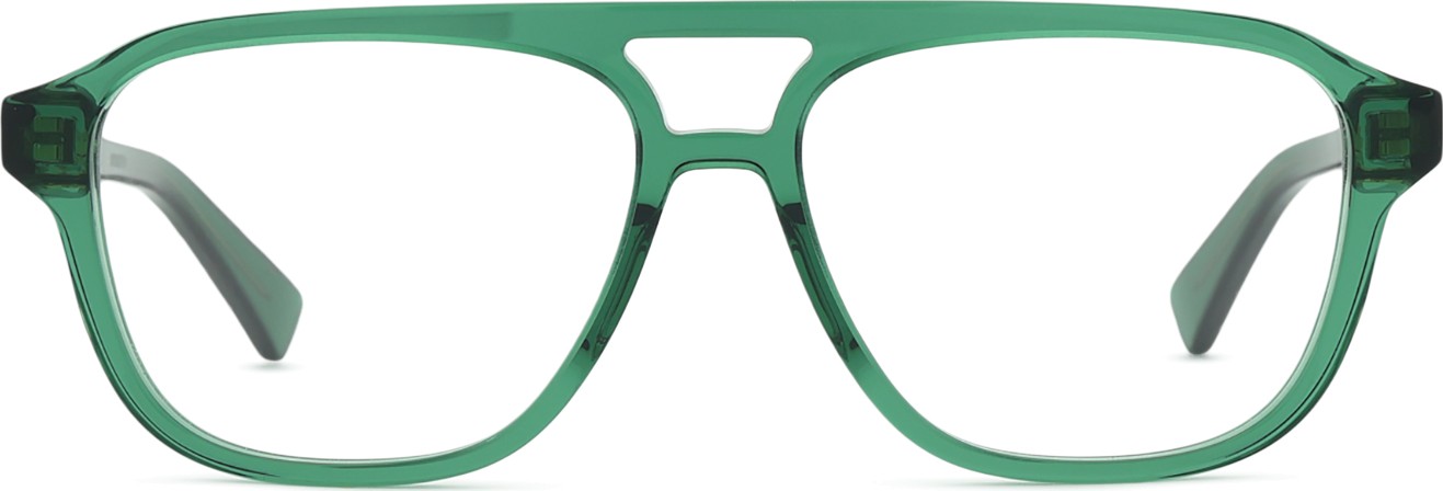 The green colour of the frame perfectly matches a cool skin tone and dark brown,