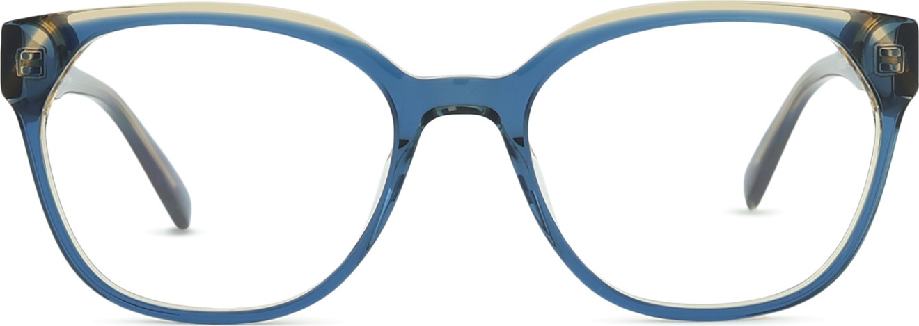 The blue colour of the frame perfectly matches a cool skin tone and light brown,