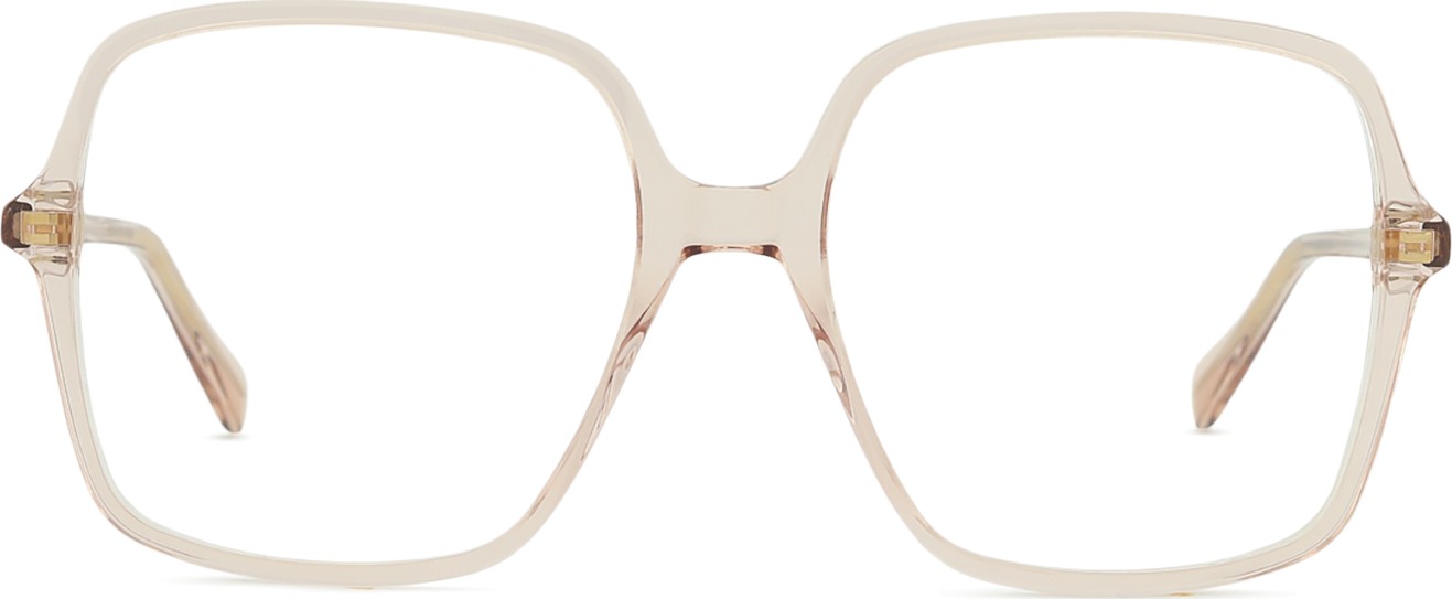 The pink colour of the frame perfectly matches a cool skin tone and light brown